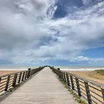 The kitchen amenities at the Saint-Jean-de-Monts accommodation feature an electric kettle, a refrigerator, and kitchenware, provided in an outdoor dining area. A Chacun Son Moule is a seafood restaurant serving French dishes within reach of La Maison De La Pinede, 4 Chambres. The nearest bus stop, Saint-Jean-de-Monts - Boulevard des Maraichins, is nearly a 5-minute stroll away.